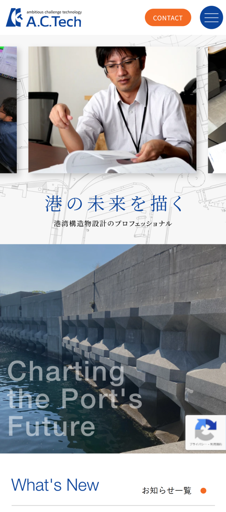 株式会社A.C.Techは、海洋土木をメインとした総合エンジニアリング会社です。具体的には、岸壁や護岸、防波堤といった港湾構造物の建設計画からそれに伴う解析や設計などをおこなっています。ホームページを開く -